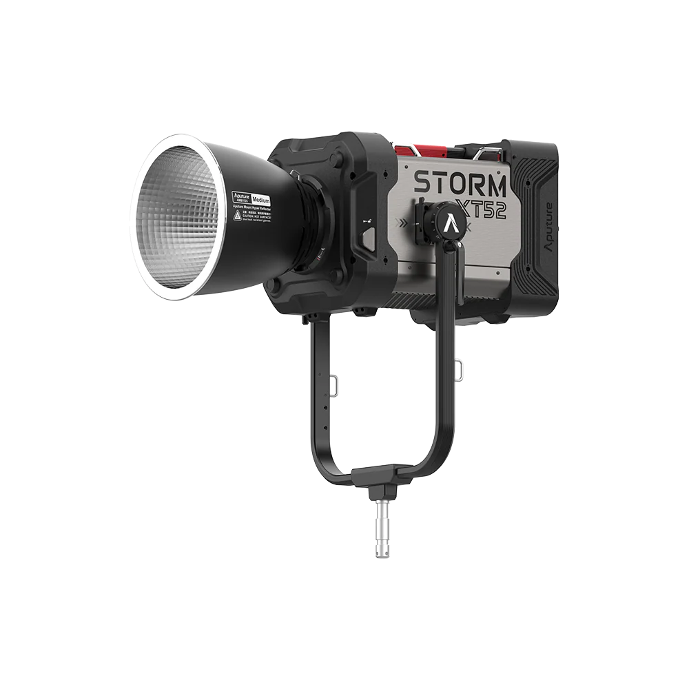 The Aputure STORM XT52 utilizes the BLAIR (Blue/Lime/Amber/Indigo/Red) light engine, delivering the highest quality white light and greatest +/- green adjustability of any LED technology. The BLAIR light engine’s indigo emitters enhance fluorescing materials like natural daylight and tungsten sources. The STORM XT52’s output is also the brightest of any LED point source fixture in the industry, 41,900 Lux at 5M with a 35° reflector. This exceeds the brightness of a 6,000W HMI fixture.